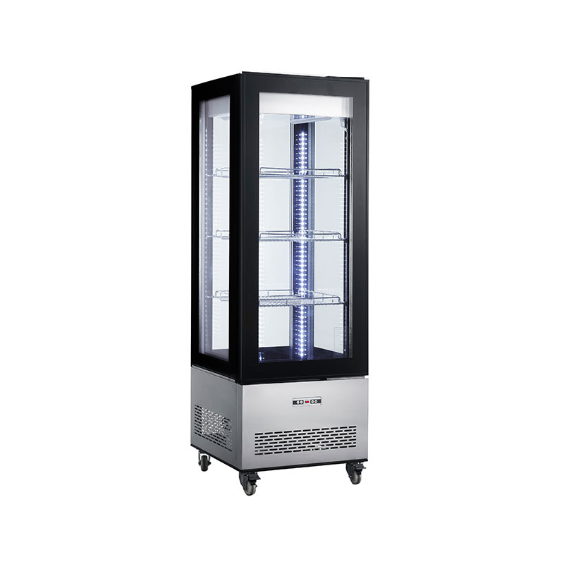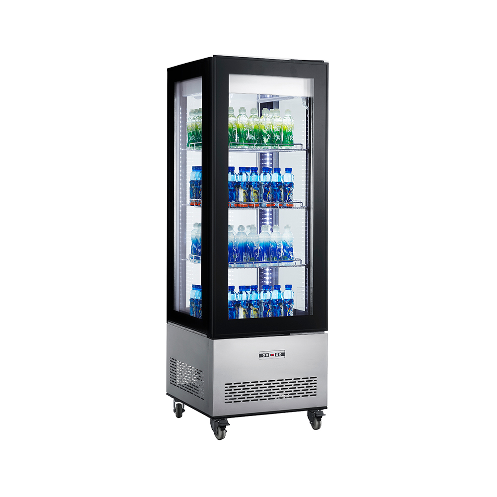 正確設立技能擺貨腔體內部 LED 彩燈光電子高溫控制器和高溫凸顯隨意調節非常電鍍隔架前平玻離門4 面3層安全玻璃4輪2剎觸點開關風冷式制冷機積極主動化霜不銹鋼材質